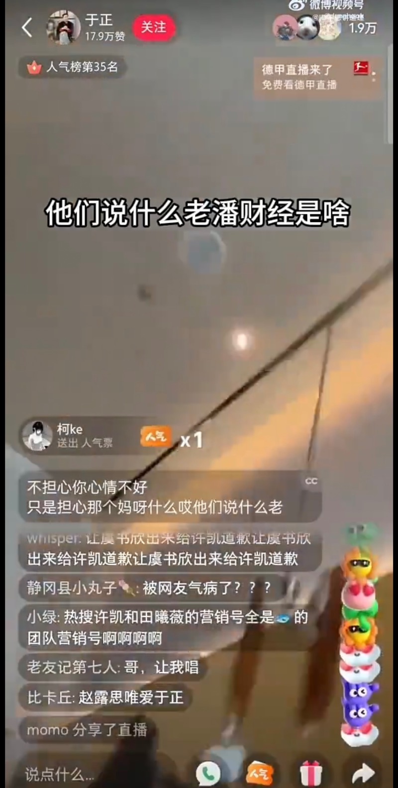雖然這個話題閱讀量超4.6億,但是從5月底至今,一直沒有上過熱搜,被網友質疑有資本在壓熱搜。一直到因為許凱爆戀情,老闆于正兩次開直播對線,在直播中突然“不經意”的提起「他們說什麼老潘財商啊?」讓這個話題再次被關注!