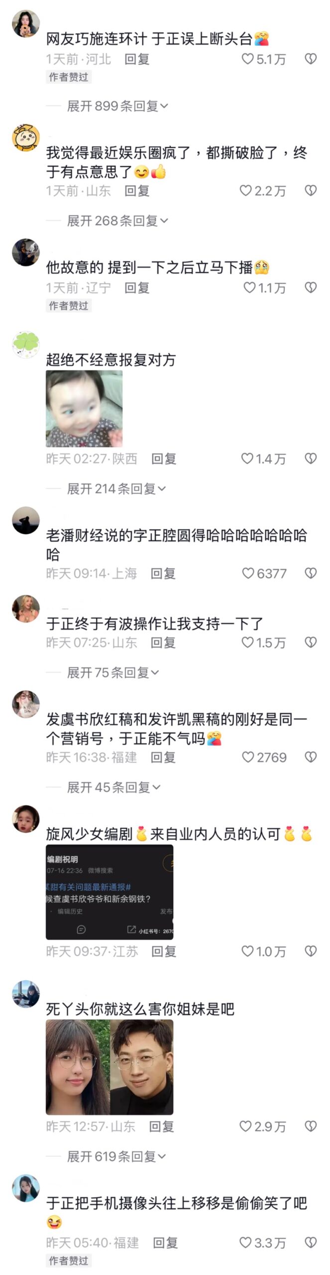 對於于正“倒油”,網友熱評👇