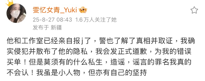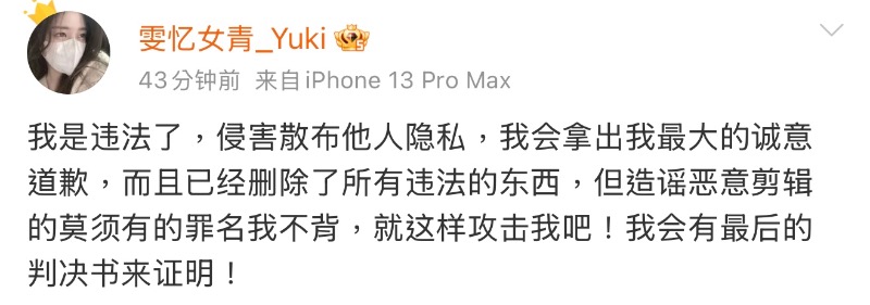 27號這天,這位網友連續發了好幾條微博喊話,首先她承認自己散播影片,屬於侵犯隱私權,自己會正式道歉,但強調沒有造謠,不是真的不會認!
