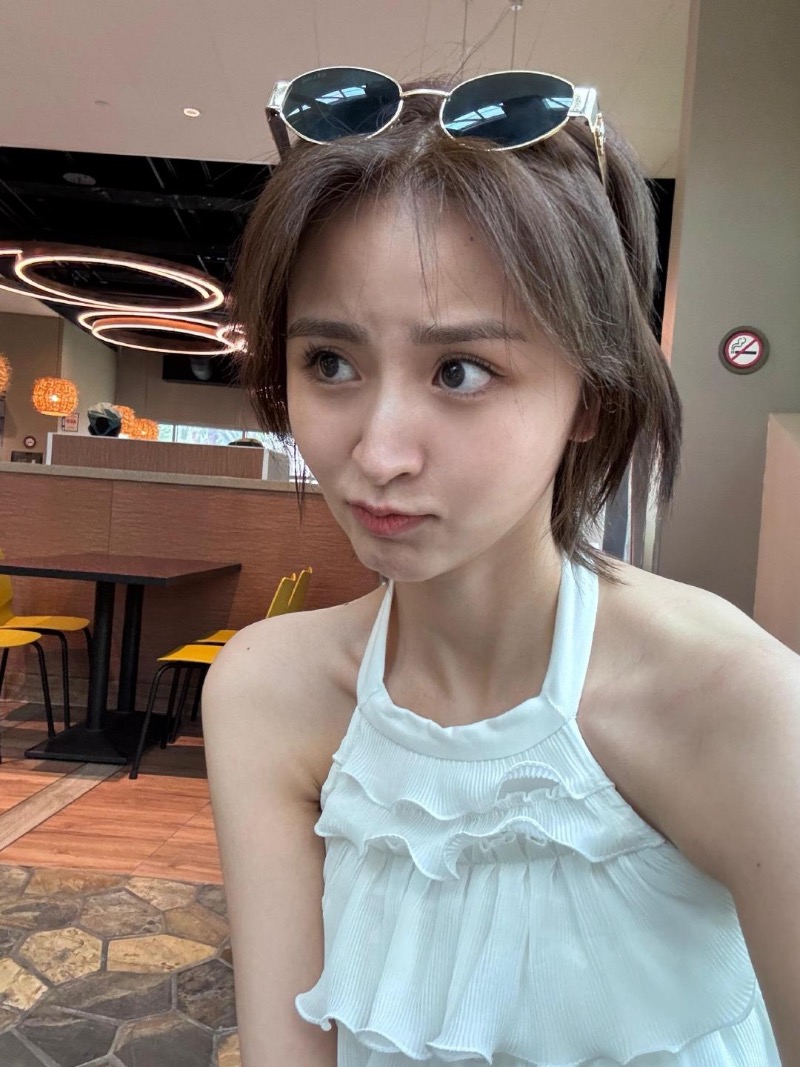 媽啊~還真的是不折不扣的寸頭!來看看她戴假髮的效果👇