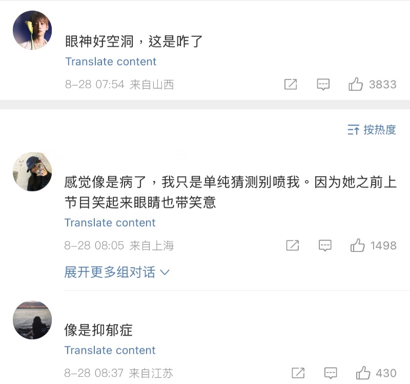 評論區看了她的近照,都質疑是不是抑鬱症了,因為眼神看起來確實讓人擔憂👇