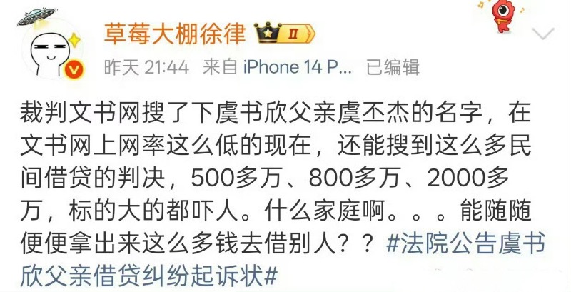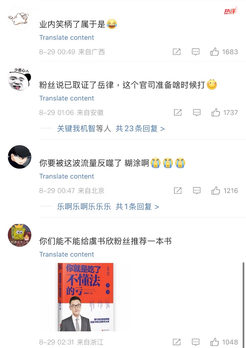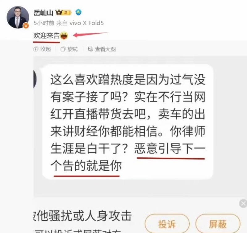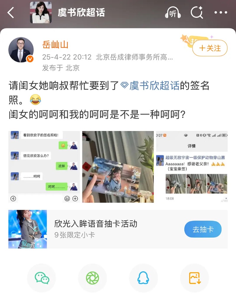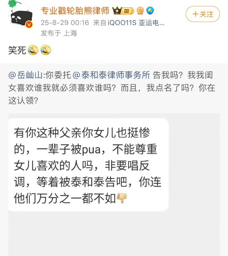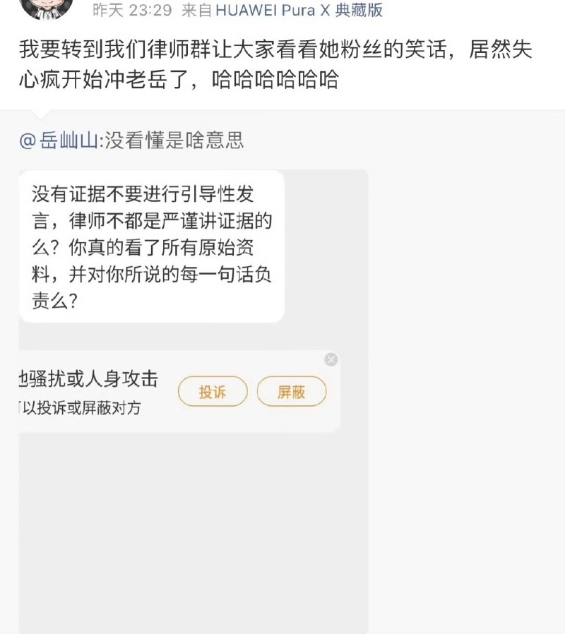 “某人”粉絲直言會讓他在律師界做不下去,岳屾山直接艾特了負責虞書欣父親的律師所,讓他們出來交代👇