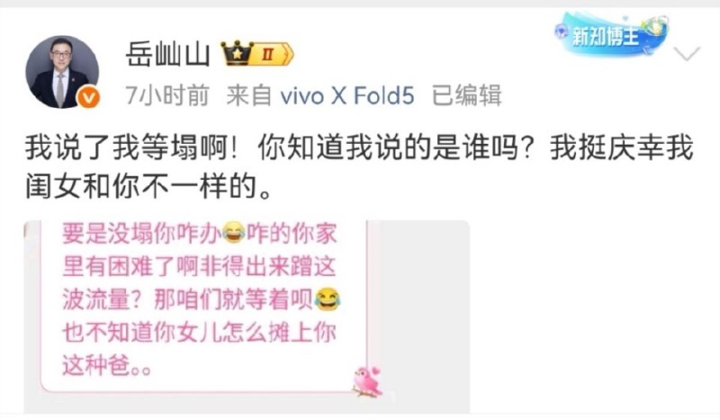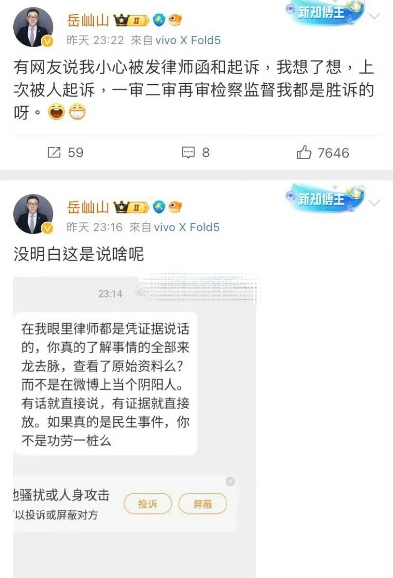 “某人”粉絲直言會讓他在律師界做不下去,岳屾山直接艾特了負責虞書欣父親的律師所,讓他們出來交代👇