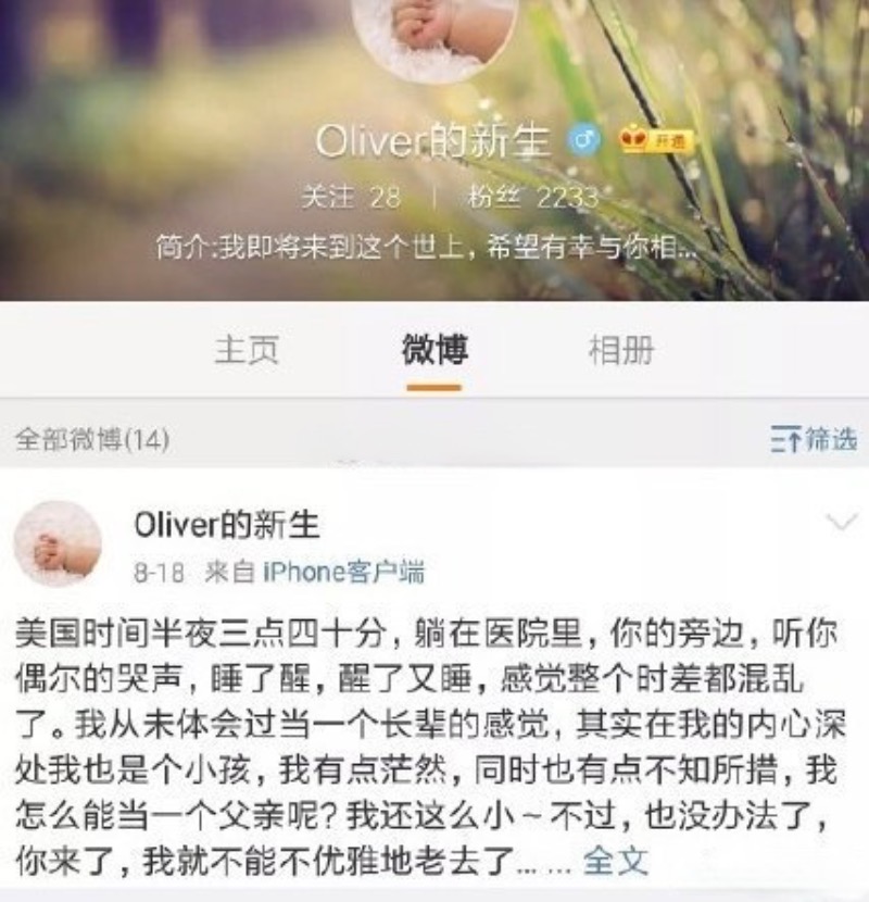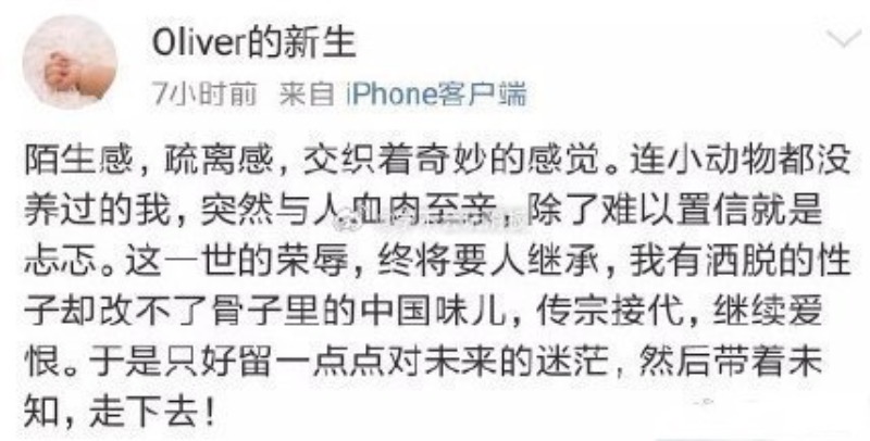 這個帳號的主人,表示前陣子在國外生了一個孩子,還用大女主角的台詞感慨:「這一世的榮辱,終將要人繼承。」