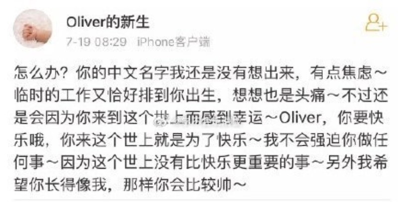 接著網友扒出許荔莎帖文裡面提到的「Oliver」,發現于正曾在7年前陷入生子爭議!當時在《延禧攻略》播出時間,有網友發現有個帳號疑似是于正小號,名字就是「Oliver的新生」。
