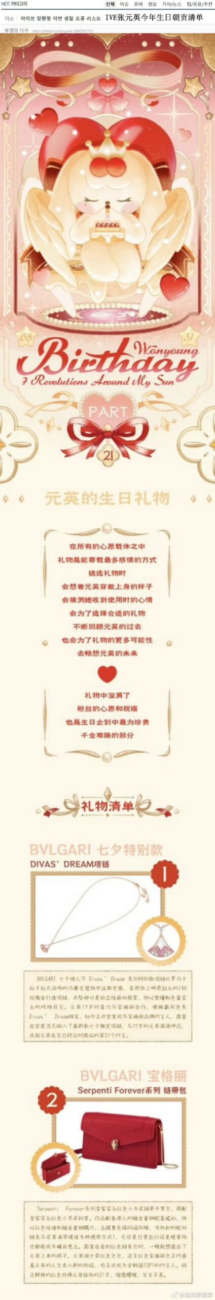 但當中中國粉絲送上的禮物,卻引起了極高的關注和爭議!據悉,中粉集資了5億韓元買生日禮物,尤其在部分禮物清單被公開之後,被指接受了「粉絲朝貢」遭受異議!