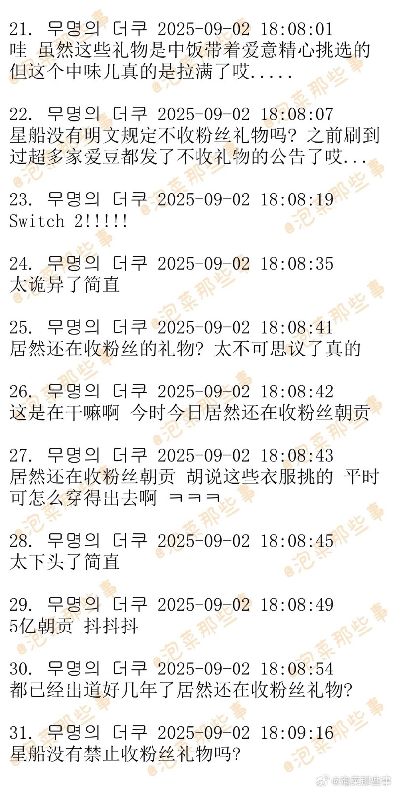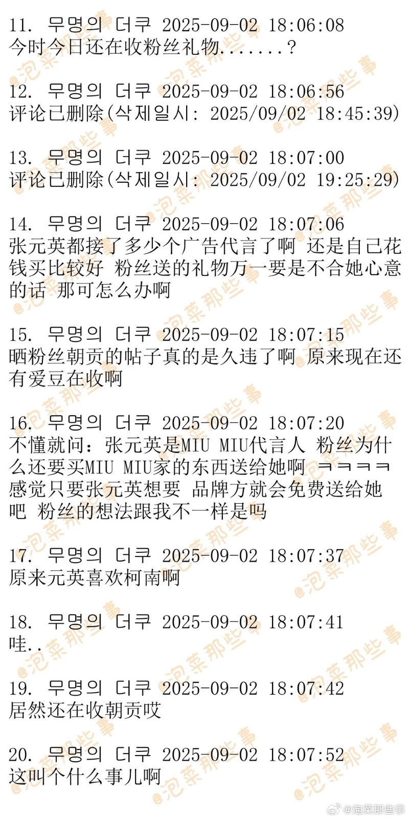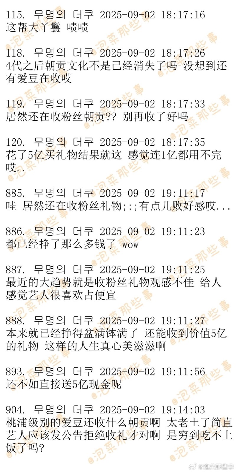 列表公開之後,韓網幾乎都在炮轟接受粉絲禮物的張員瑛,認為IVE名氣這麼大,居然還在接受粉絲朝貢,韓網覺得十分不可思議!也有的認為中粉送上的禮物「中味」十足,評論看起👇