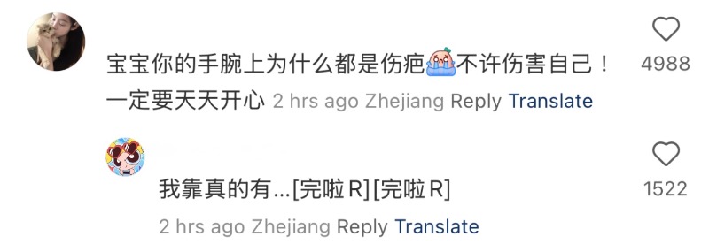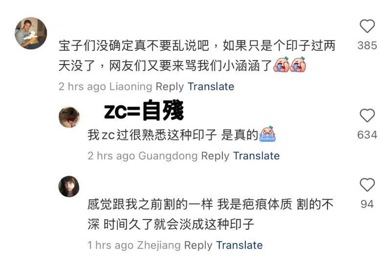 評論區有不少網友留言,表示這就是自殘的傷疤👇