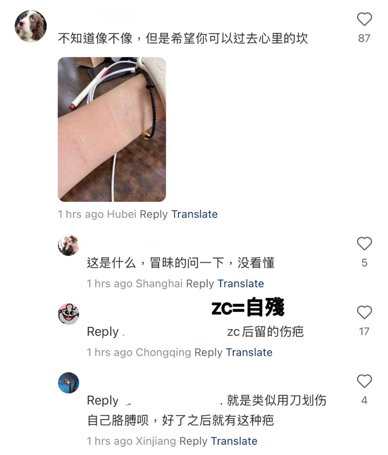 評論區有不少網友留言,表示這就是自殘的傷疤👇