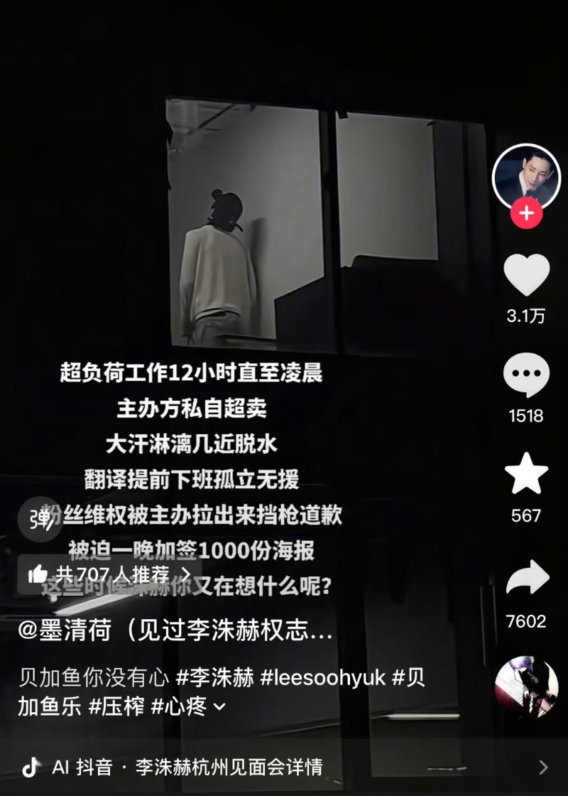 根據現場粉絲表示,由于活動現場空調故障,李洙赫當天大汗淋漓地完成行程,離場時臉色蒼白、步履蹒跚。而粉絲拍到的現場照,也證明了李洙赫全身濕透👇
