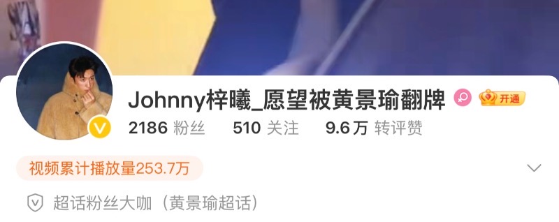 這位粉絲不但是黃景瑜超話大咖,參與的話題都和黃景瑜有關👇