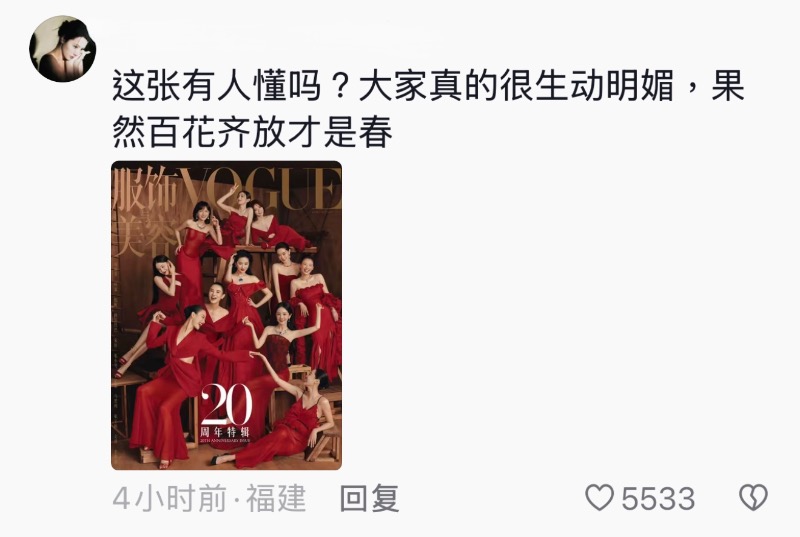 媽啊~這封面真的太威武了啦!是噠,配合中國版《VOGUE》雜誌二十周年紀念,雜誌社一口氣邀請了11位女藝人拍攝封面,甚至還有單人封面,真的陣容龐大!先來看看部分花絮照!