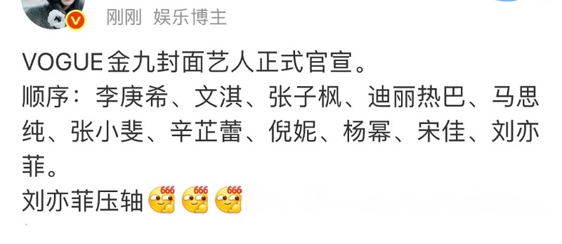 是噠,這樣的番位,在群像封面也顯而易見,劉亦菲直接站在C位!