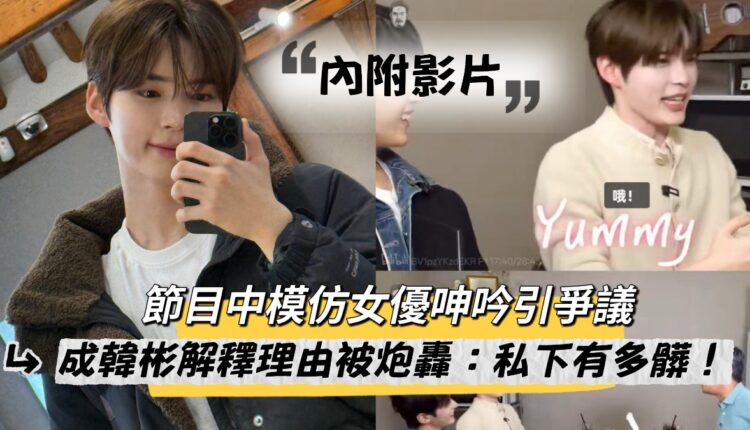 「每次過減速帶都發出女人的呻吟聲!」成韓彬解釋節目中模仿色情呻吟的原因…被罵更兇了!內附影片!
