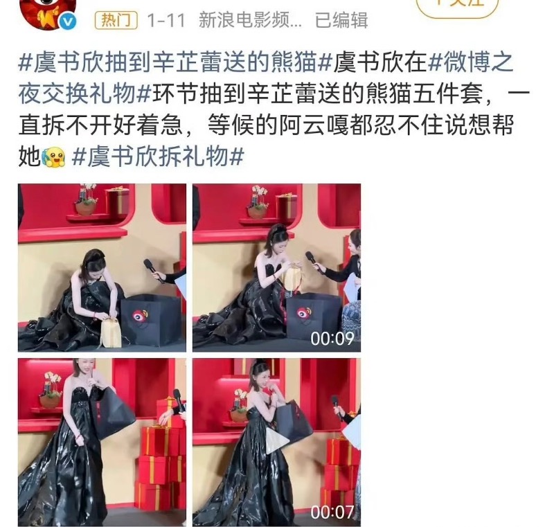 這究竟怎麼一回事呢?這就不得不重溫今年初的《微博之夜》交換禮物環節啦!眾所周知,連續兩年的微博之夜,出席的藝人都需要準備禮物交換,按照規則,一般都會在現場公佈自己抽中什麼禮物,比如這樣👇