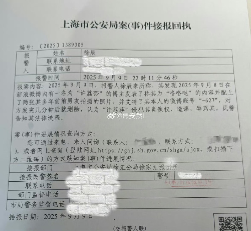 9號這天,有網友表示許荔莎在微博公開掛出自己,因此去了警局報案👇