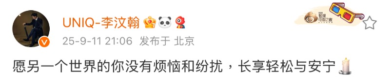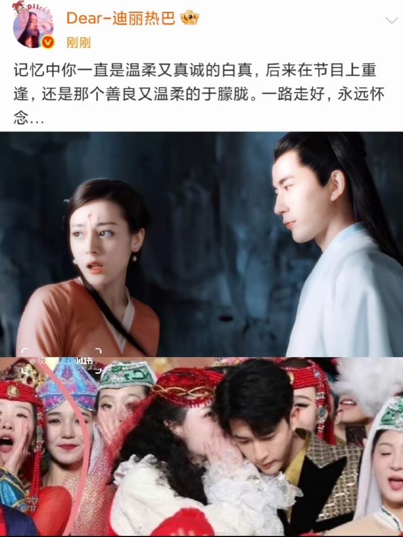 而除了一起合作《三生三世》,更曾一起以新疆人身份登上央視春晚的迪麗熱巴,也發文悼念👇