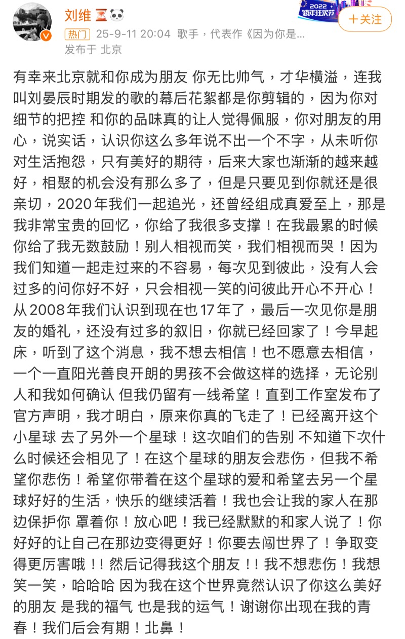 而除了一起合作《三生三世》,更曾一起以新疆人身份登上央視春晚的迪麗熱巴,也發文悼念👇
