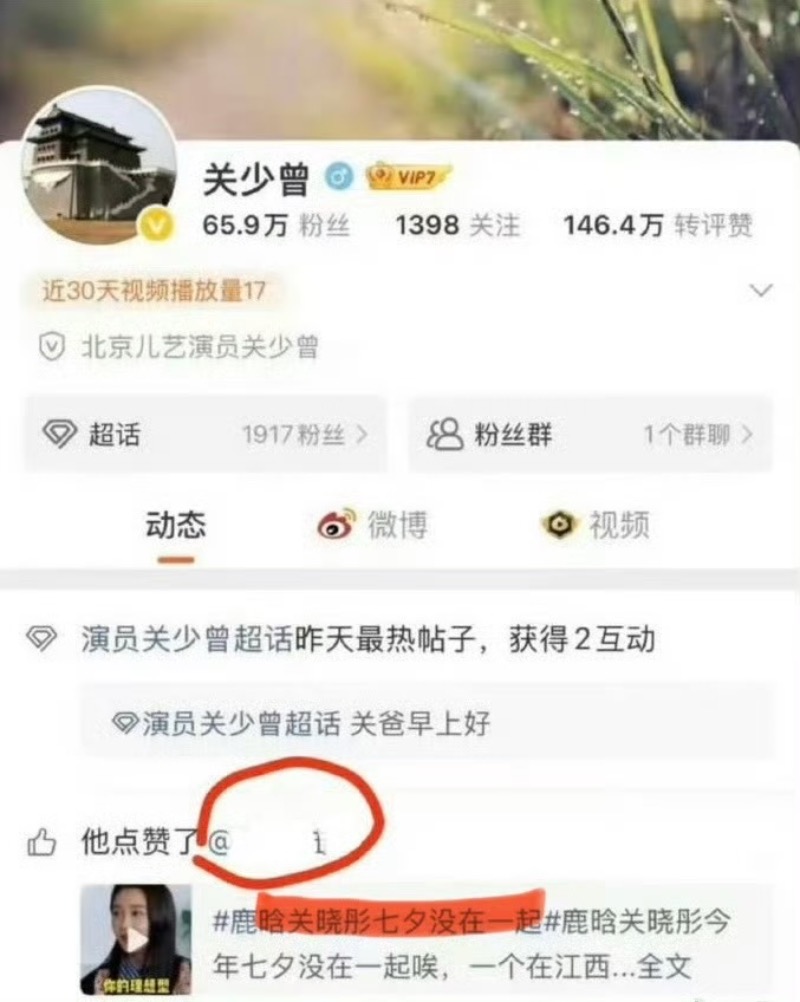 另外,網友也發現,關曉彤父親居然點讚了兩人相關的貼文!該貼文提到了鹿晗和關曉彤已經分手,所以七夕根本沒有在一起度過~
