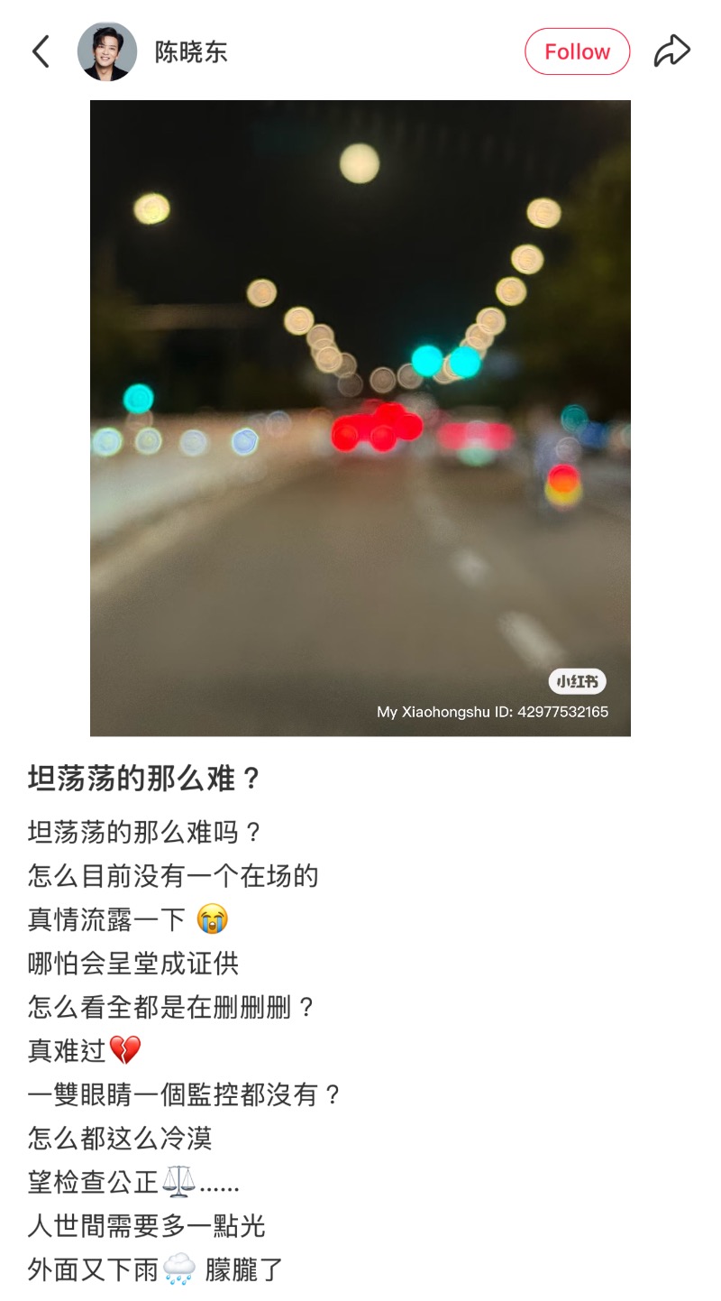 陳曉東直言「坦蕩蕩的那麼難嗎?」,批評現場人員無人出面說明真相,反而集體刪除記錄(「怎麼看全都是在刪刪刪?」),呼籲知情者即使需作證也應坦誠。