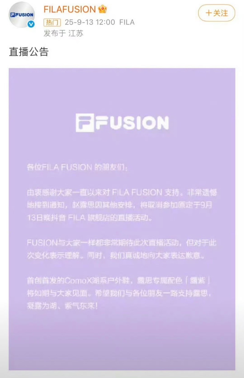 明明預熱活動做了好幾天,品牌方也在社交平台進行倒數,結果最後卻被取消!原因?品牌方聲明中提及了是因為「趙露思因其他安排」,所以直播被取消了!