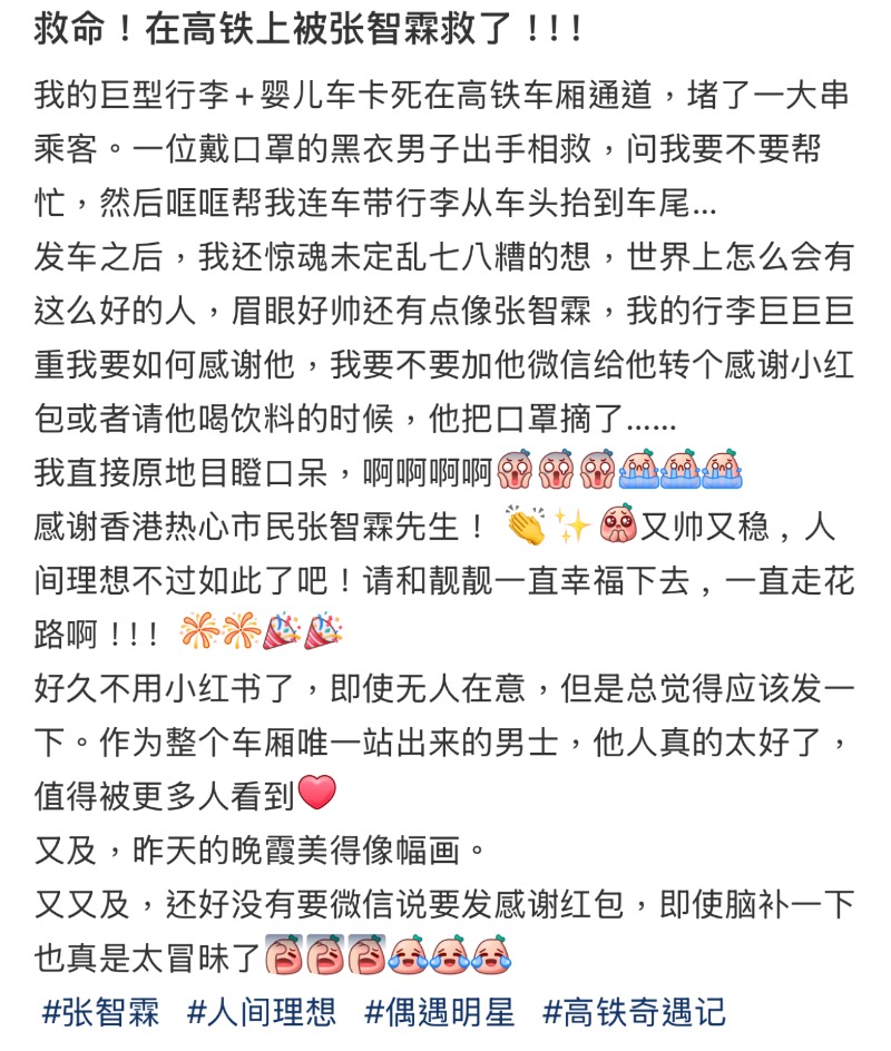 媽啊~張智霖真的就是大好人一枚啊!是噠,有網友在社交平台發文,表示想「感謝香港熱心市民張智霖!」
