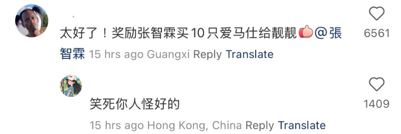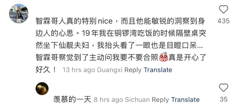 而在評論區,也有不少網友分享自己曾偶遇張智霖的溫暖經歷👇