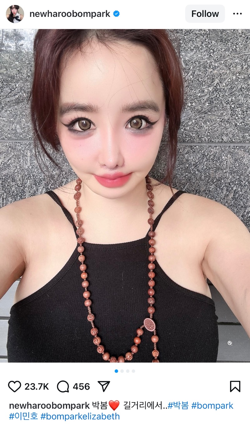 之後朴春就暫時沒有任何其他動作,一直到最新的社交貼文,朴春上傳了自拍照,表示自己正在大街上,然後…帶了李敏鎬的標記👇