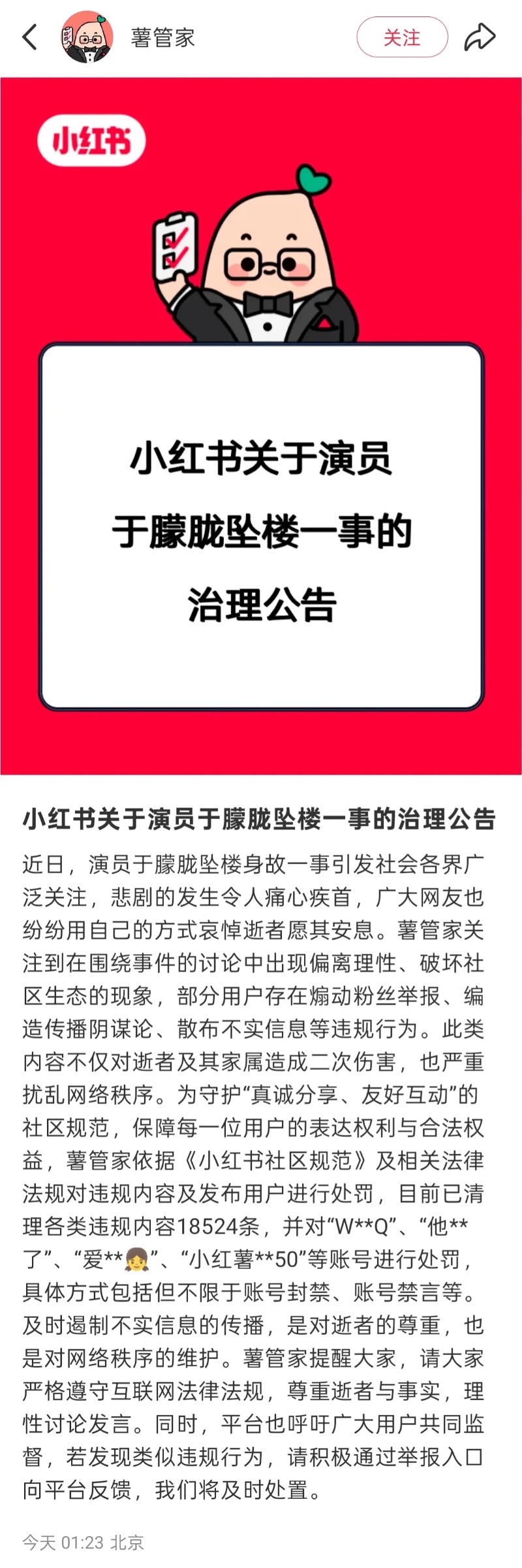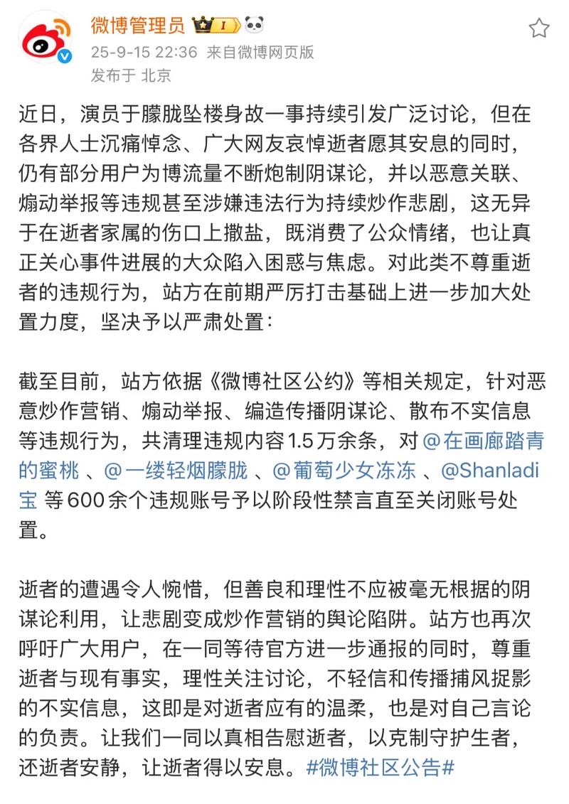 而微博和小紅書不約而同發出公告,表示將會整治有關于朦朧的相關討論,制止惡意謠言👇