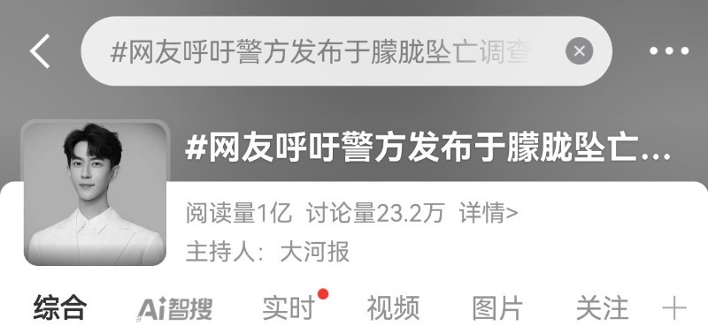 而「網友呼籲警方發布于朦朧墜亡調查報告」也有破億閱讀量,但並沒有上高位熱搜👇
