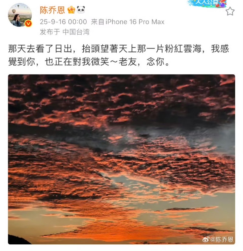 這已經是陳喬恩連續9年發粉紅海悼念Kimi👇