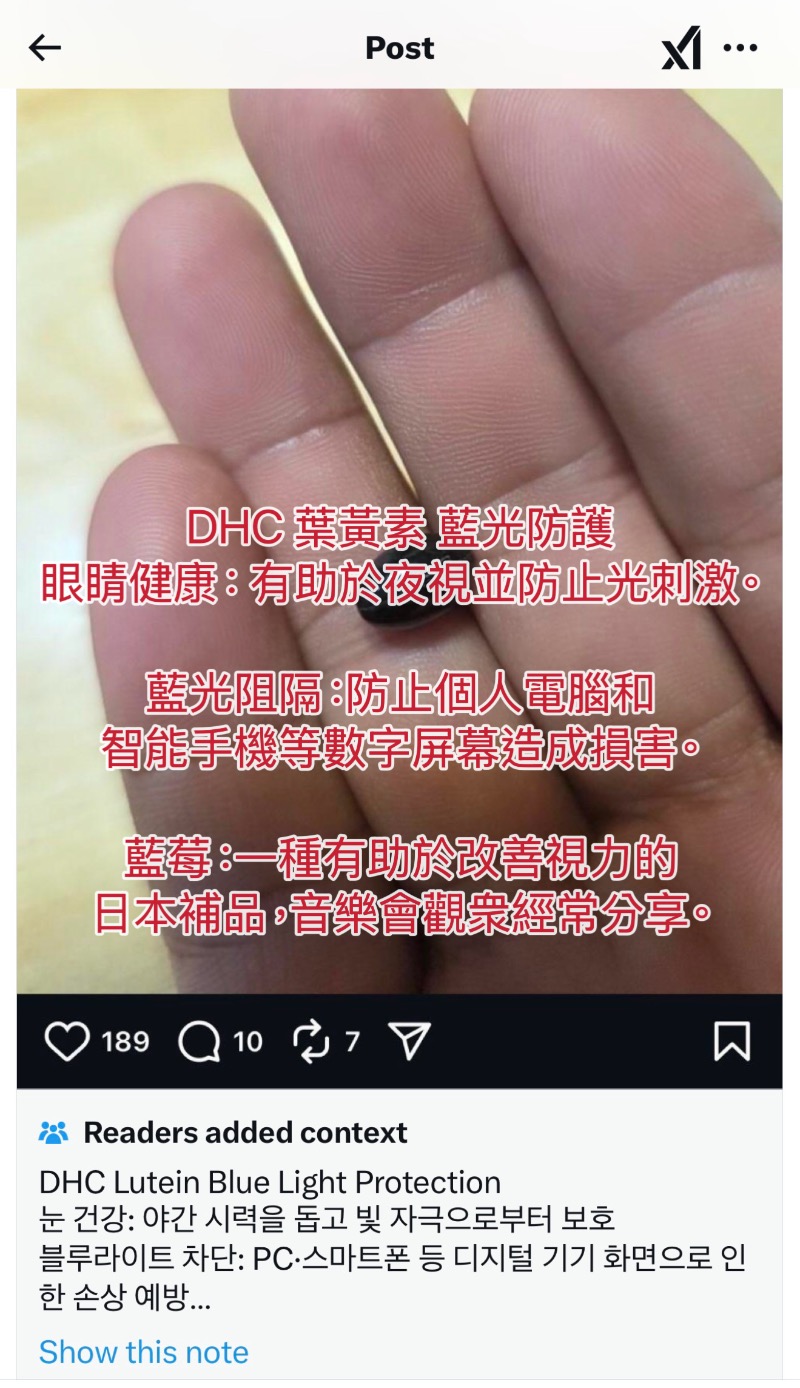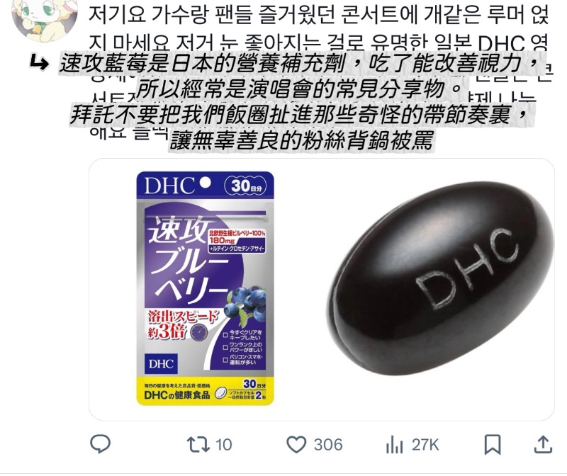 不過隨後熱轉解釋,表示這是「速攻藍莓」,一種能短時間內改善視力的補充劑,在演唱會都成常駐了,希望別煽動風向,也別拉我們善良克拉出來捱罵!