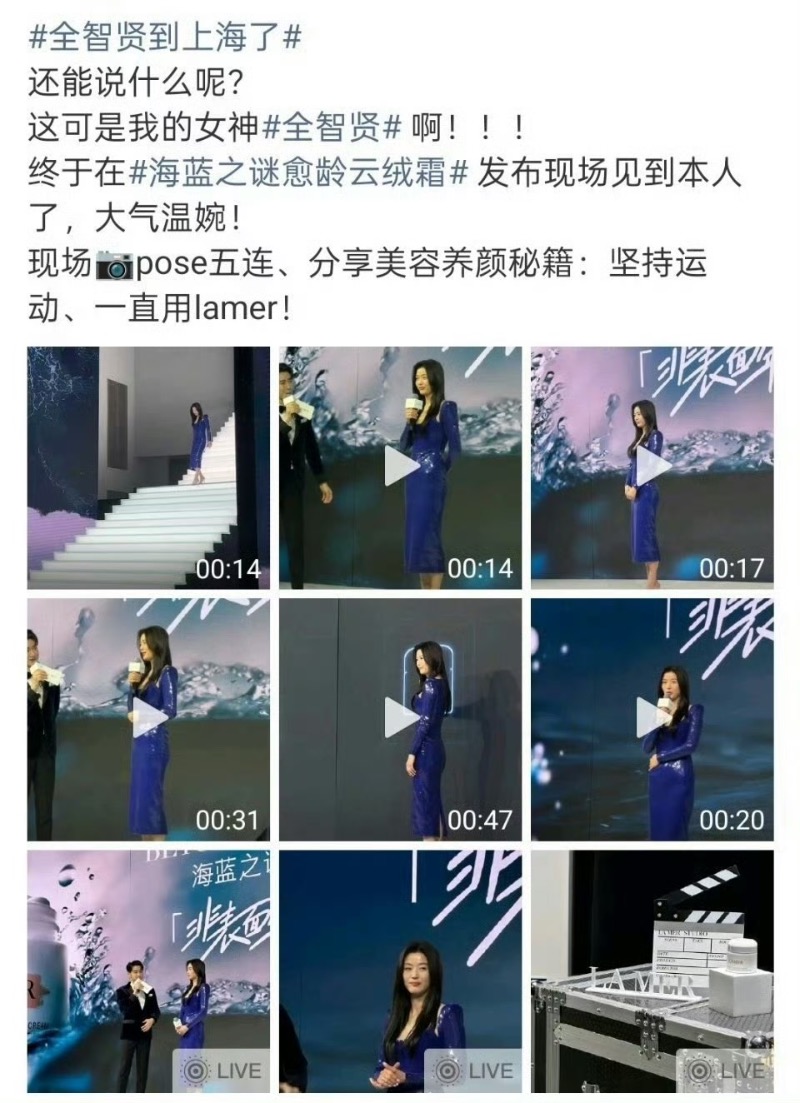 隨著網友熱議後,全智賢在中國的相關代言廣告已被撤下!首先是她代言的「海藍之謎」官方微博,已刪除全智賢所有相關博文👇