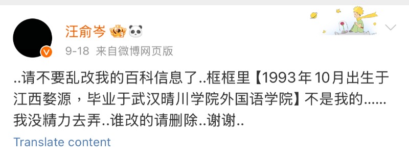 而曾兩次想輕生,卻因為于朦朧而打消念頭,同時也是其圈內好友的編劇汪俞岑,日前發文懇求網友不要亂修改自己的百科信息,當時被修改的是其出生年份和教育資料👇