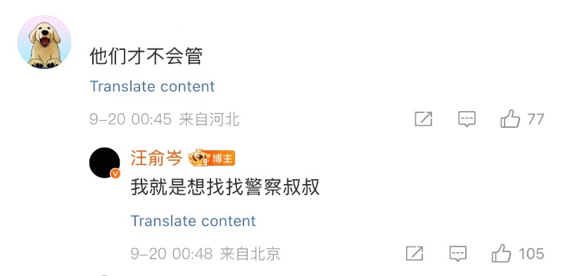 汪俞岑之前一直在微博公開力挺于朦朧,在于朦朧去世之後,她公開了和于朦朧聊天截圖,讓網友知道于朦朧如何救下想輕生的自己!而其最後兩句話,也被解讀認為于朦朧不可能去輕生👇