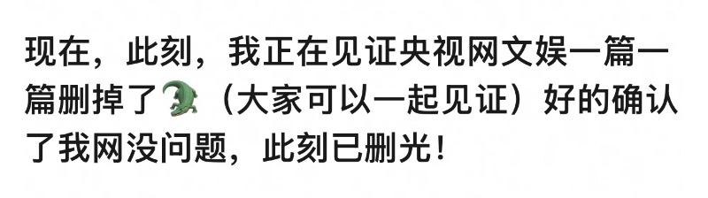 沒想到近日就有網友發現,中央電視台旗下的文娛網,已經在開始刪除虞書欣相關帖文,甚至有網友親眼目睹了「直播」版,從一開始可以搜尋到,變成逐一減少👇
