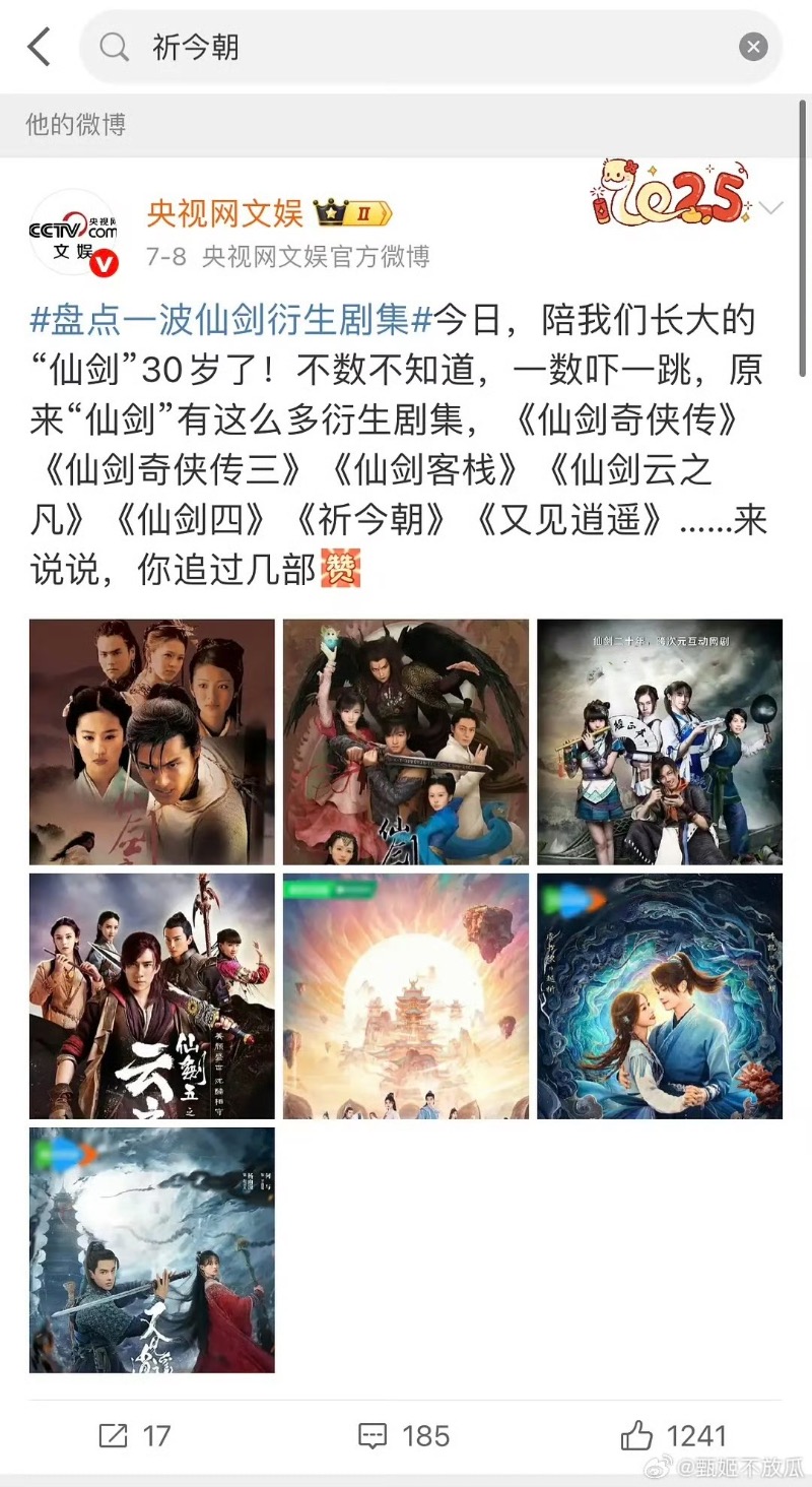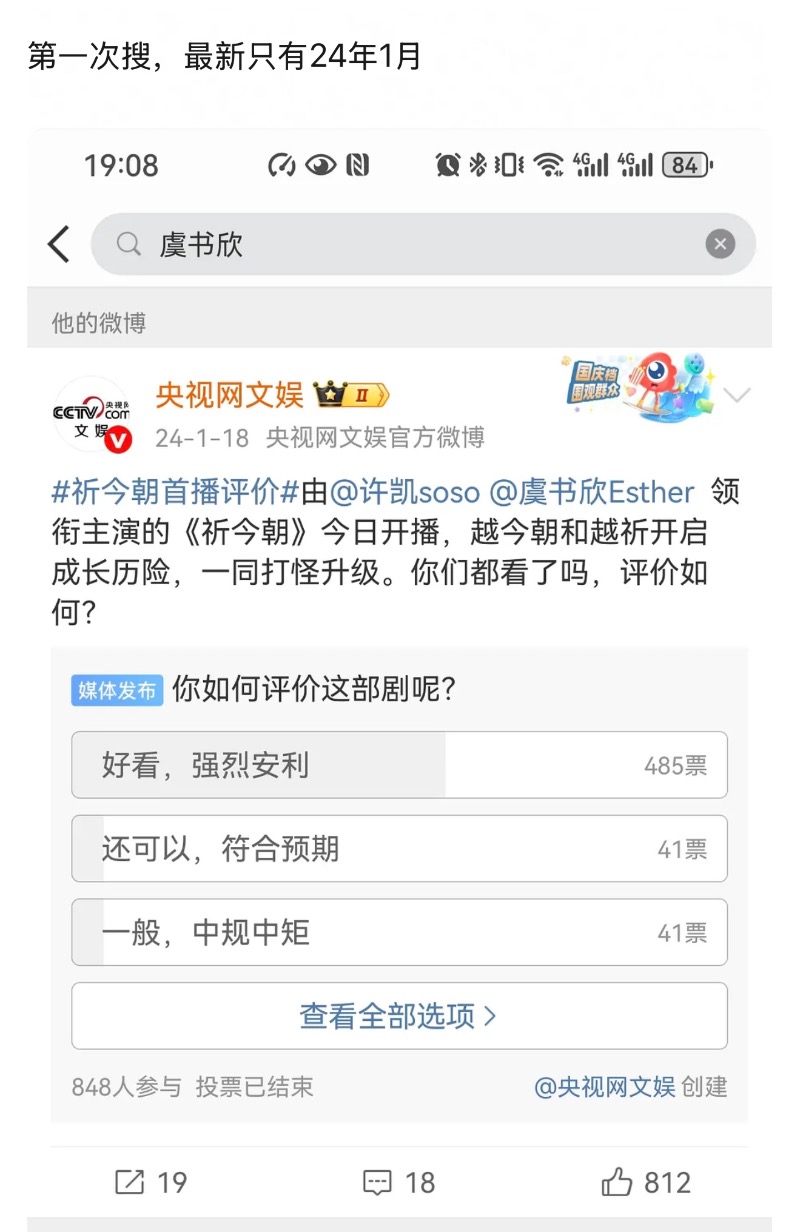 而許凱和虞書欣合作的《祈今朝》,也曾出現在央視文娛網,但目前全搜尋不到了!