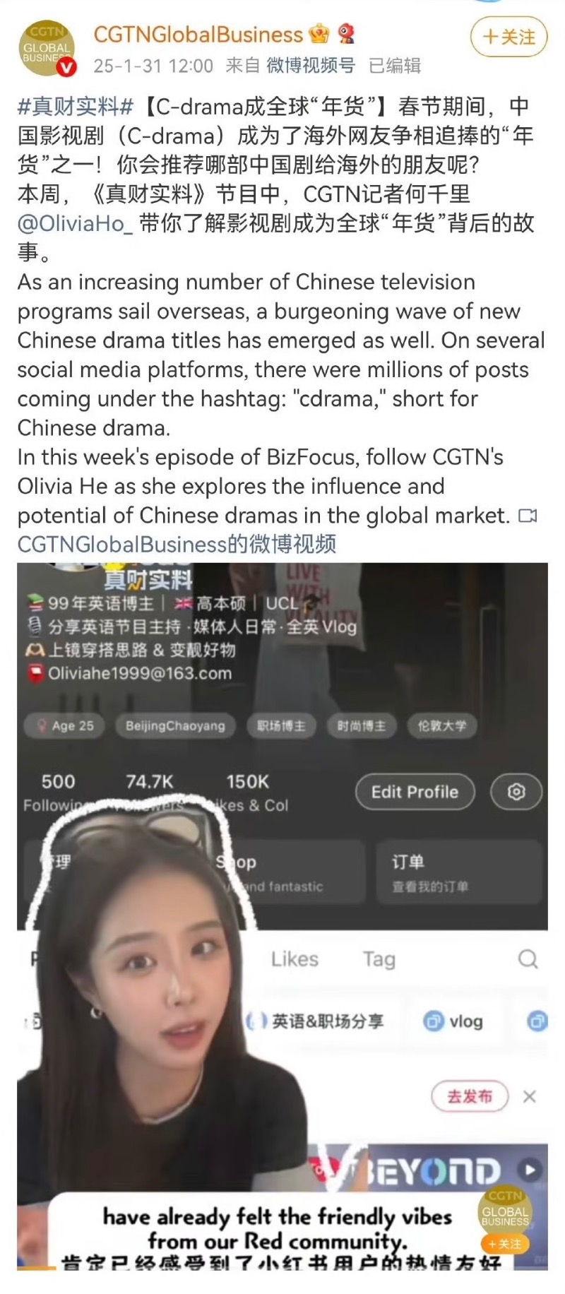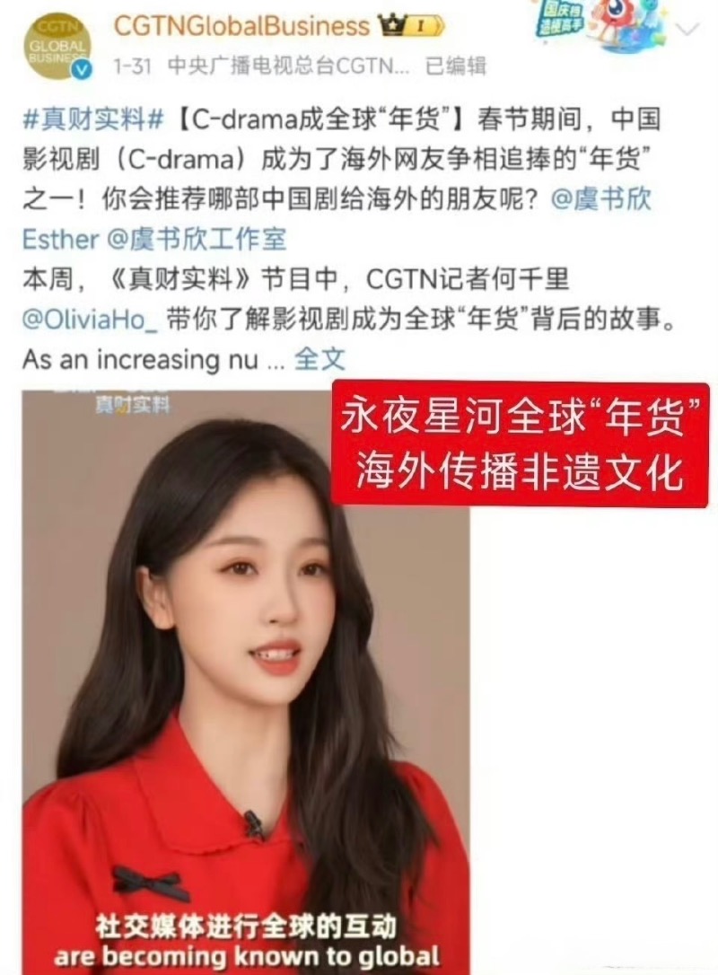 另外,同樣屬於央視旗下的「中國環球電視網」,也將虞書欣相關的貼文編輯。除了拿走虞書欣的標籤之外,也將原是虞書欣的影片封面,更換成其他人物。