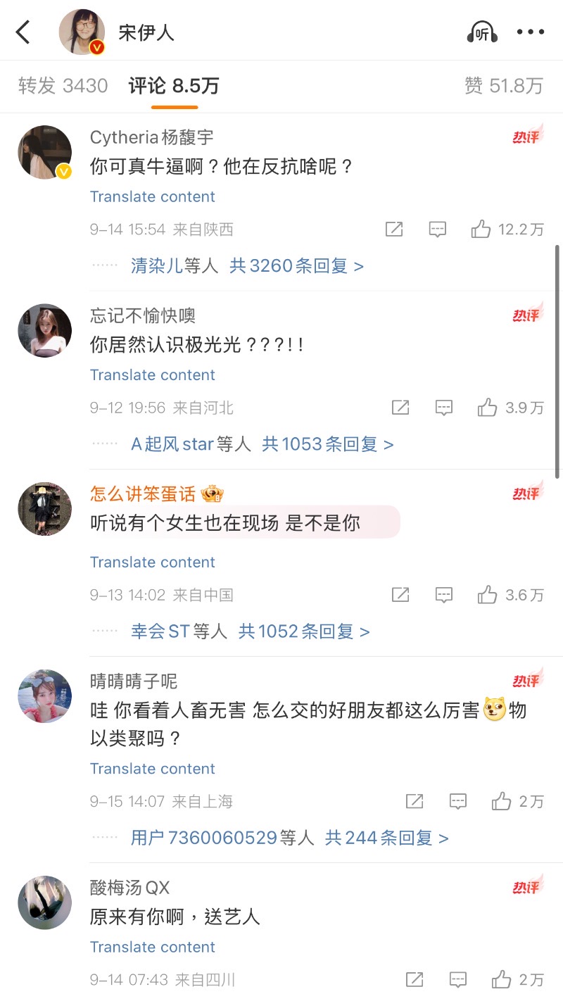 新聞:被傳是于朦朧聚餐者之一!網扒關係重重就住事發同小區!宋伊人評論區淪陷!