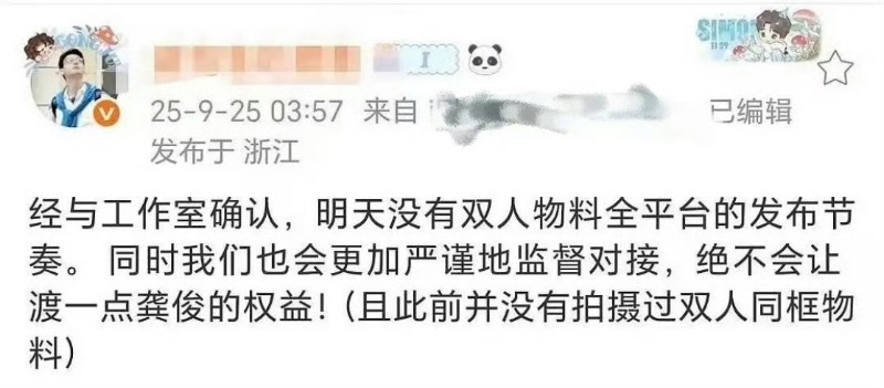 隨後就有營銷號解釋,表示公開的物料只有虞書欣,並沒有龔俊👇