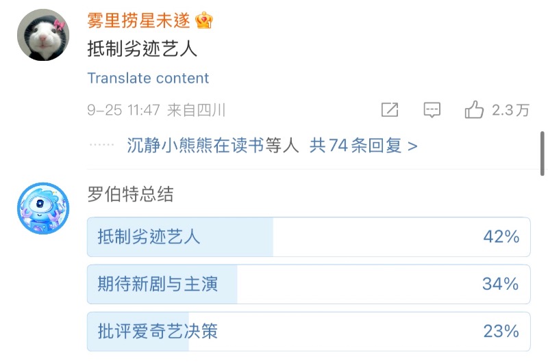 結果在愛奇藝的評論區卻大翻車,熱評都在抵制劣跡藝人👇
