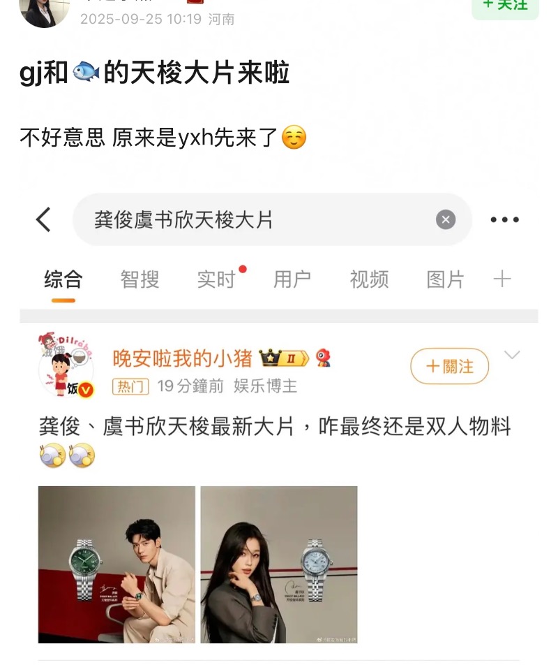但網友們卻發現了一個很有趣的現像,那就是雖然官網沒有公開虞書欣新照型,可是,卻有不少自媒體公開了,而且還是和龔俊「捆綁」在一起👇