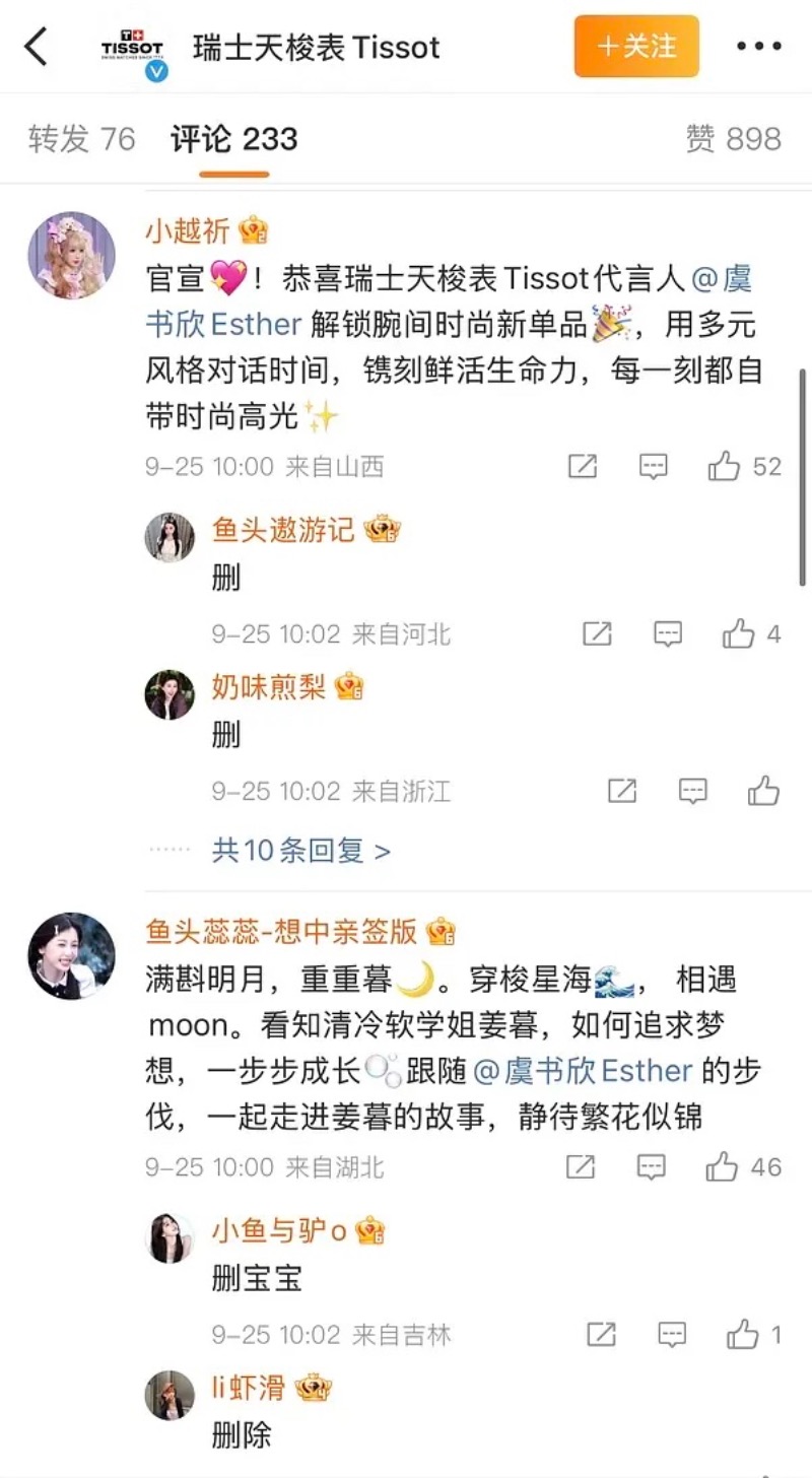 評論區還有沒看視頻,就第一時間留言的虞書欣粉絲,結果紛紛被勸刪!