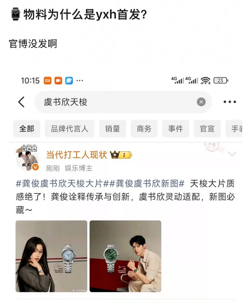 隨後就有營銷號解釋,表示公開的物料只有虞書欣,並沒有龔俊👇