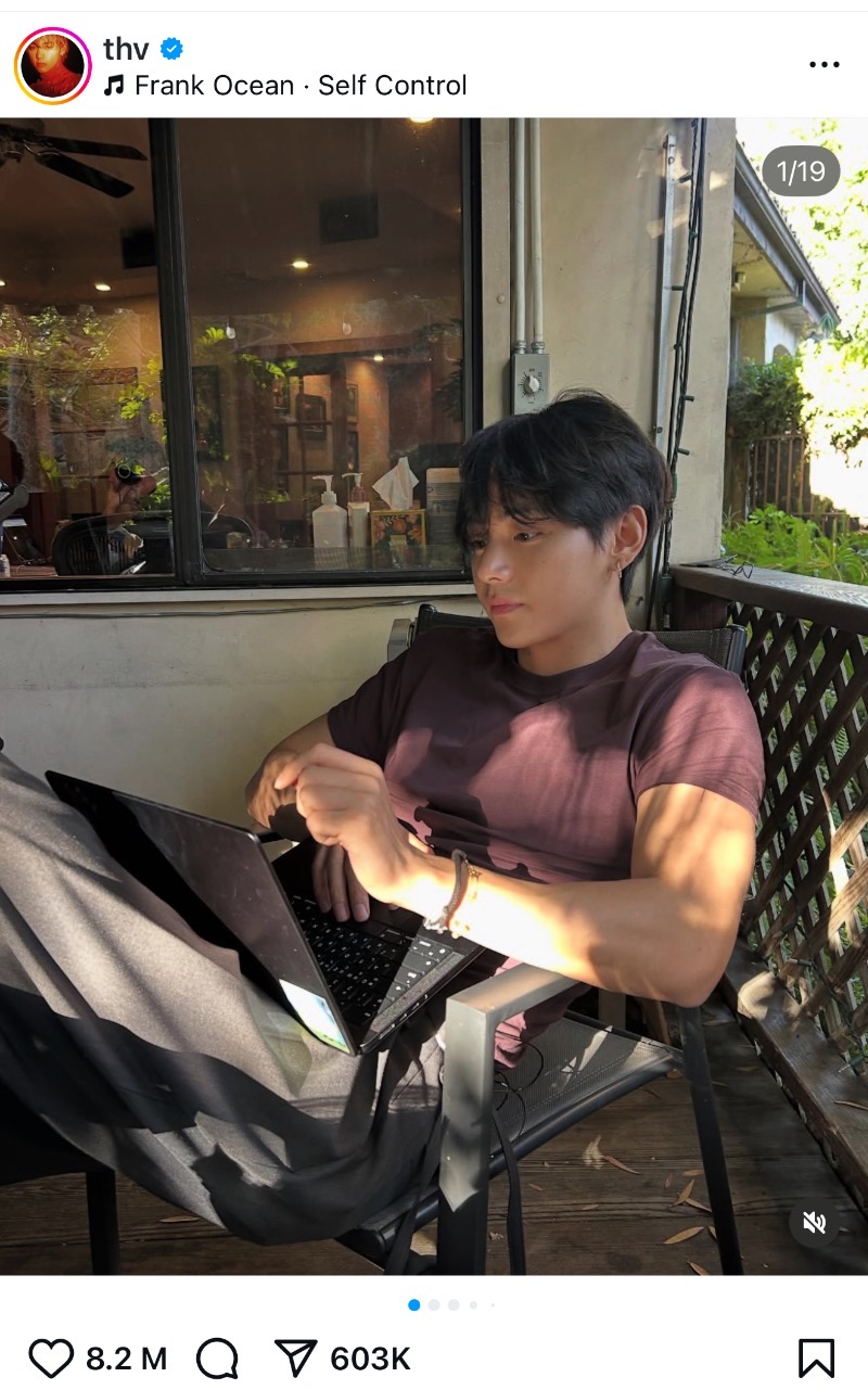 是達,退伍之後在Ins很活躍的金泰亨,27號一口氣分享了20張日常照,和粉絲分享生活!