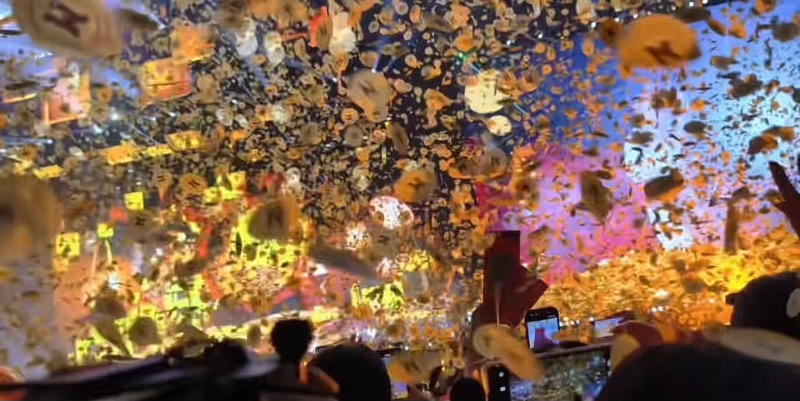 雖然但是,這造型的彩帶卻在社交平台引起爭議,不少網友表示看起來很晦氣,甚至還有評價現場看起來就像在搶紙幣、借財運,借壽借運等!