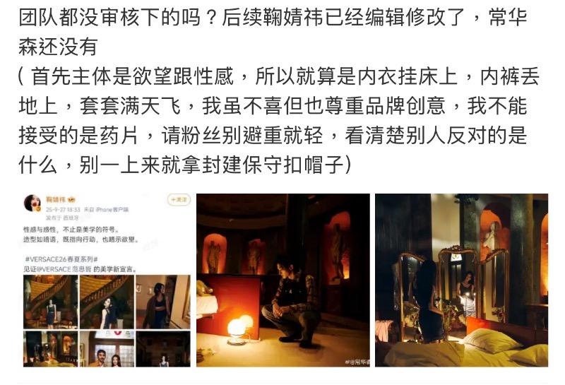 這是藝人們在品牌設置好的場景進行拍攝,這樣的構圖,引起了中國網友的不適👇