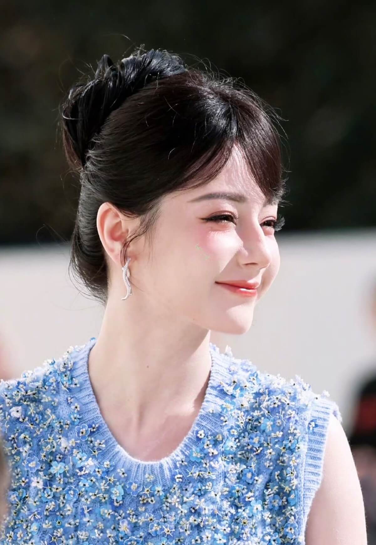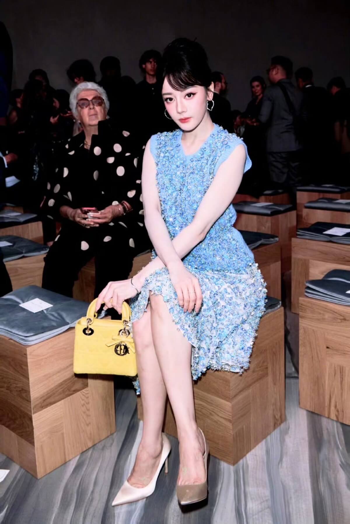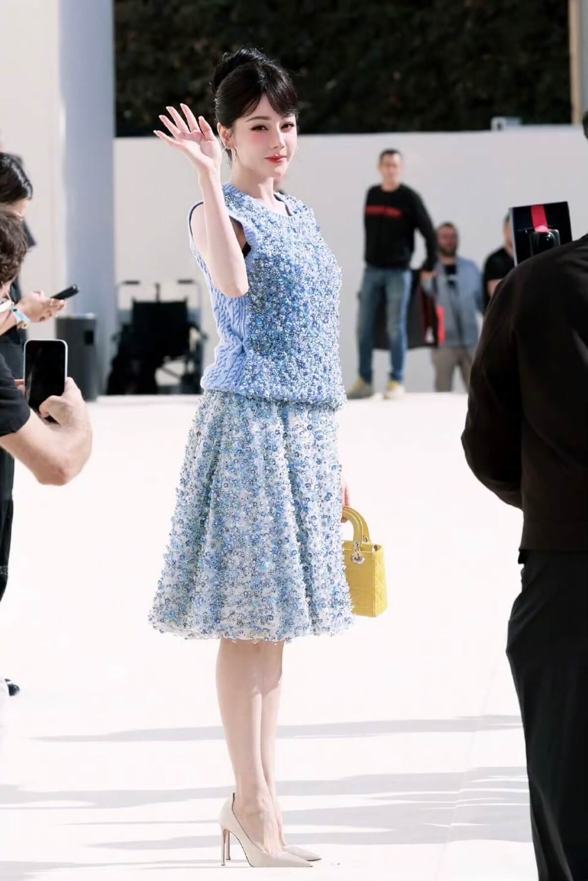 是噠,迪麗熱巴出席巴黎時裝周迪奧大秀,身爲品牌全球大使,她身着定製藍裙亮相,立體刺繡綴滿裙身,淺金捲髮配珍珠腰鏈,直接被稱「真人芭比」!