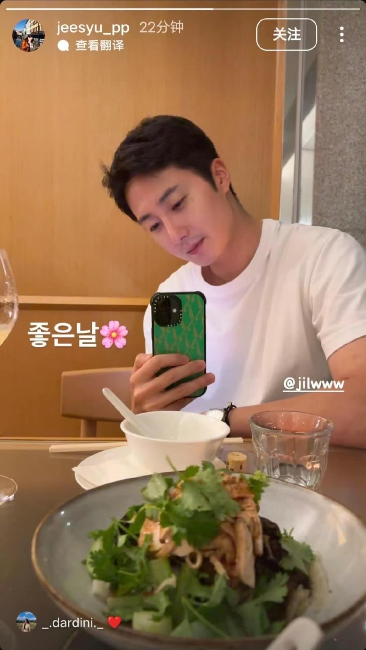 點開被艾特的帳號,女方則是曬了丁一宇的互拍照,並且配文「好日子」。可以留意的是,兩人用的是情侶手機,疑似官宣戀情。