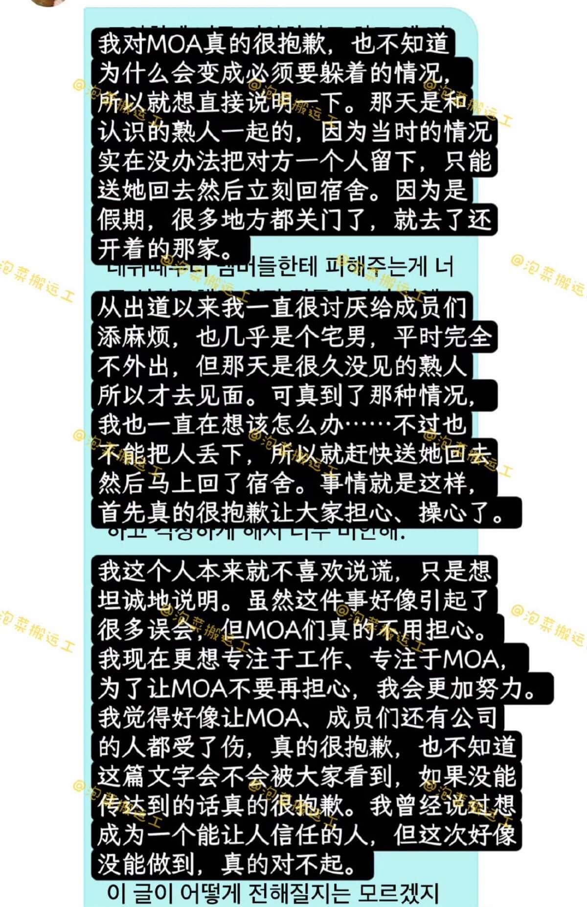 沒想到休寧凱在10號深夜,透過泡泡回應這次爭議,承認在一起的不是姐姐而是認識的友人,只是送了醉酒的她回家就離開了👇